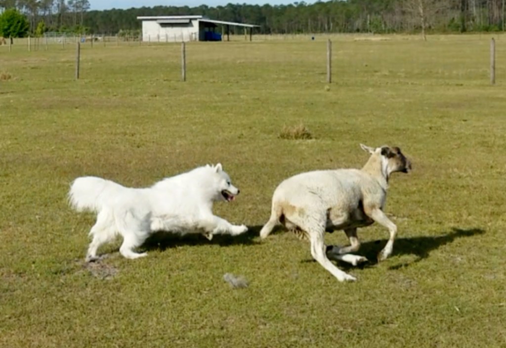 Herding as a competitive sport transforms traditional farm work into a high-stakes test of communication and instinct, where a dog and handler work together to move livestock through a prescribed course of gates and pens. It is less about “chasing” and more about controlled pressure. The dog must use its movement and presence to influence the animals’ behavior with precision and calmness. Samoyeds still retain a lot of their herding instinct and many love it. Some can even compete at trials.